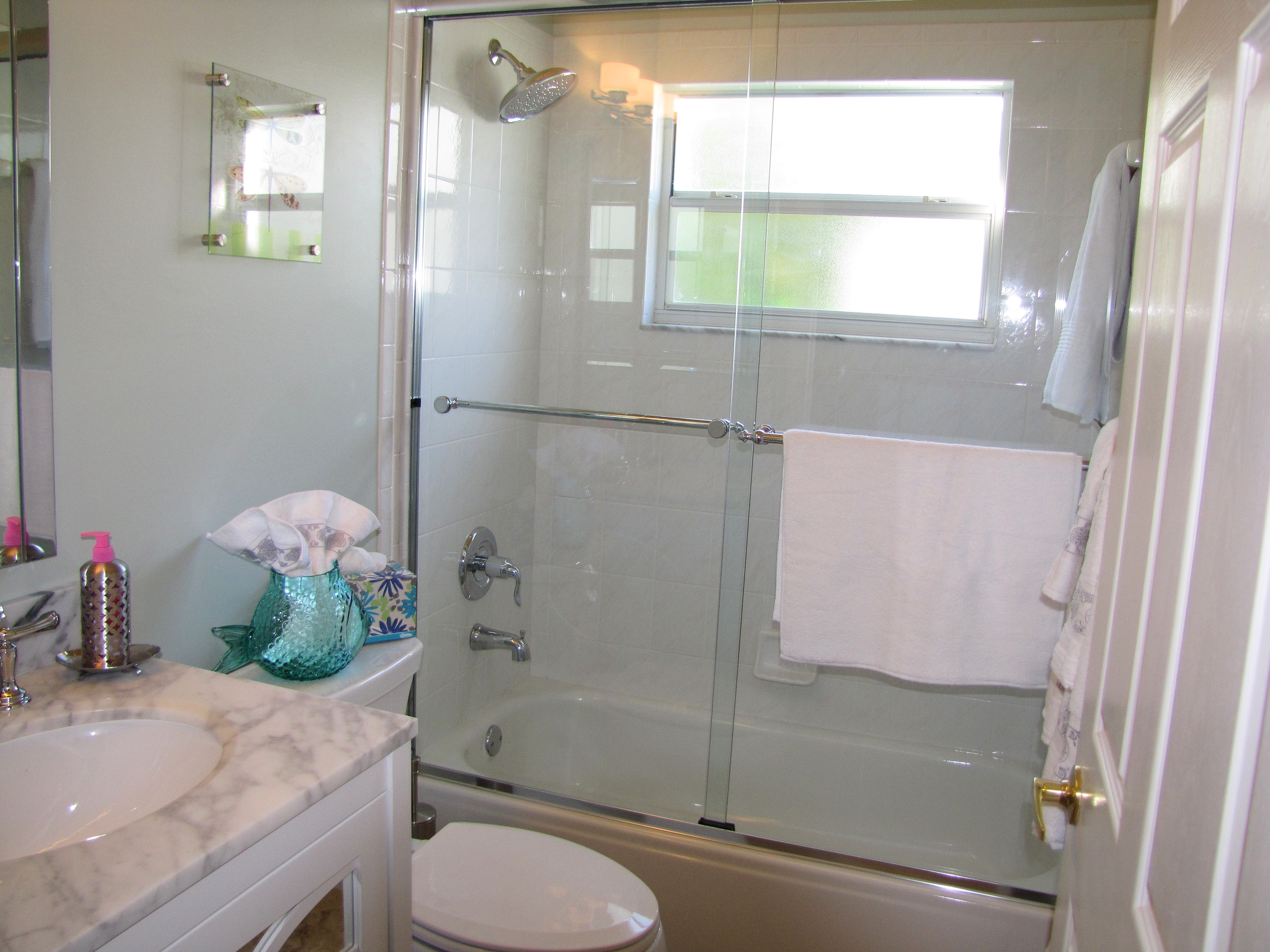 The service bathroom (we call it that because it services the great room, and the guest room) is conveniently located just