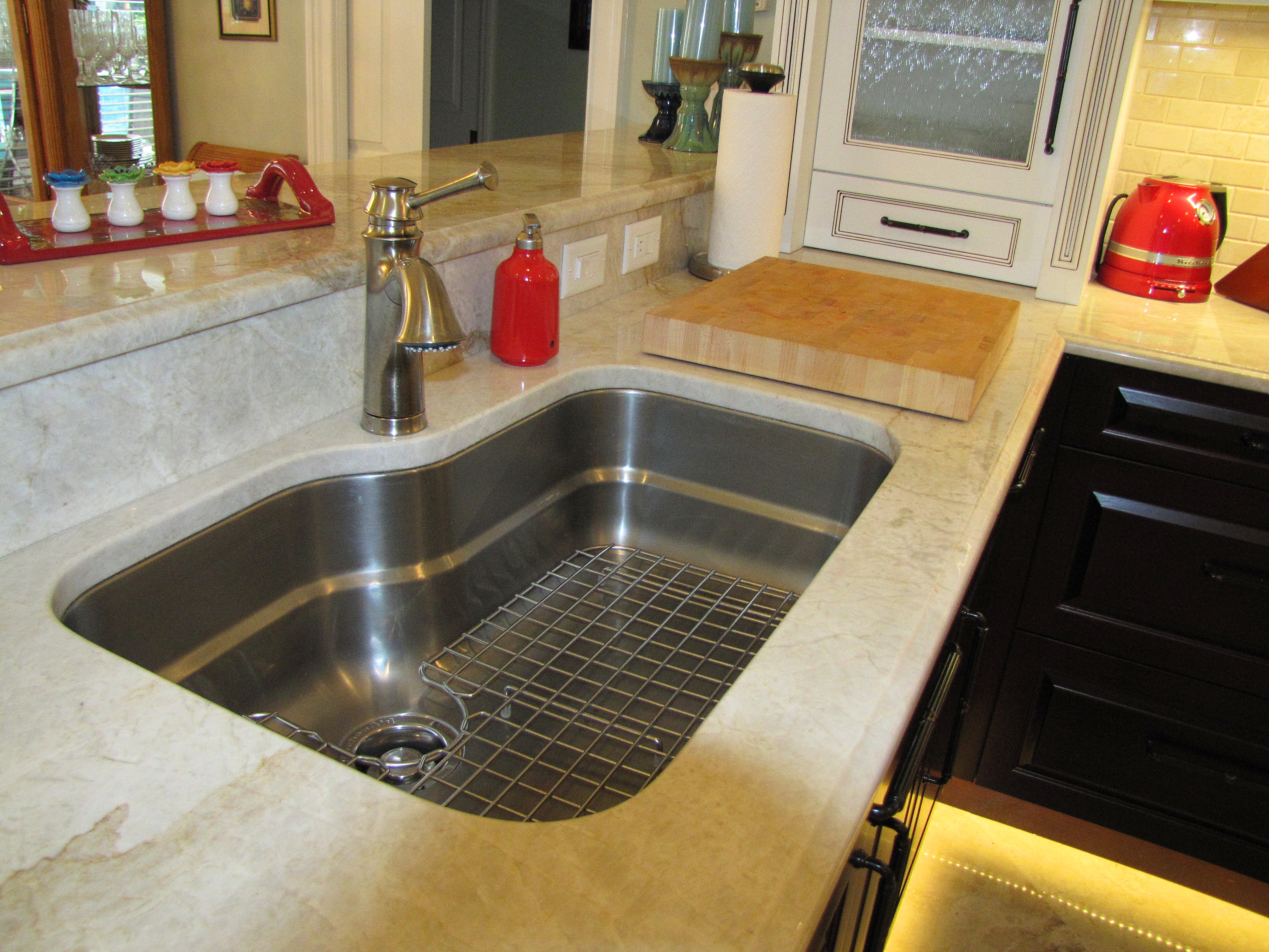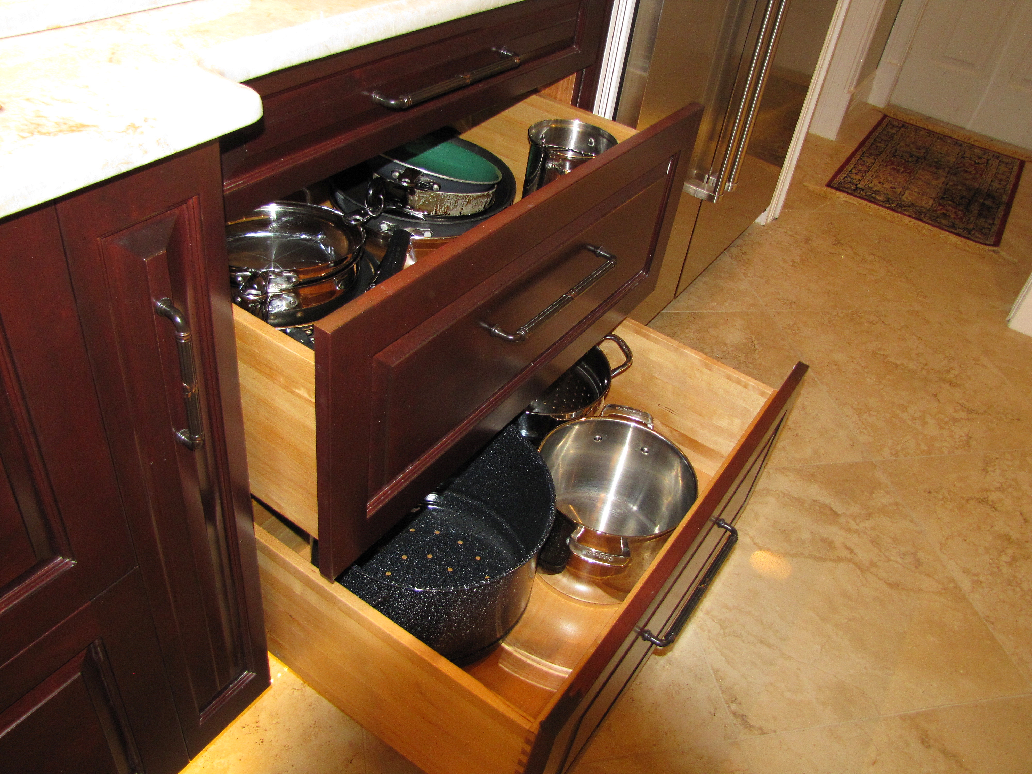 This is an extremely luxurious and well equipped kitchen. The kind of place you see in the movies. Everything is special and custom. The counters are set at a special height for comfort, the cabinetry has only illuminated huge drawers so you don't have to kneel down to find things in the back, everything is self closing, the lighting is special, even the sink is custom and of course it has an integrated food dispenser.