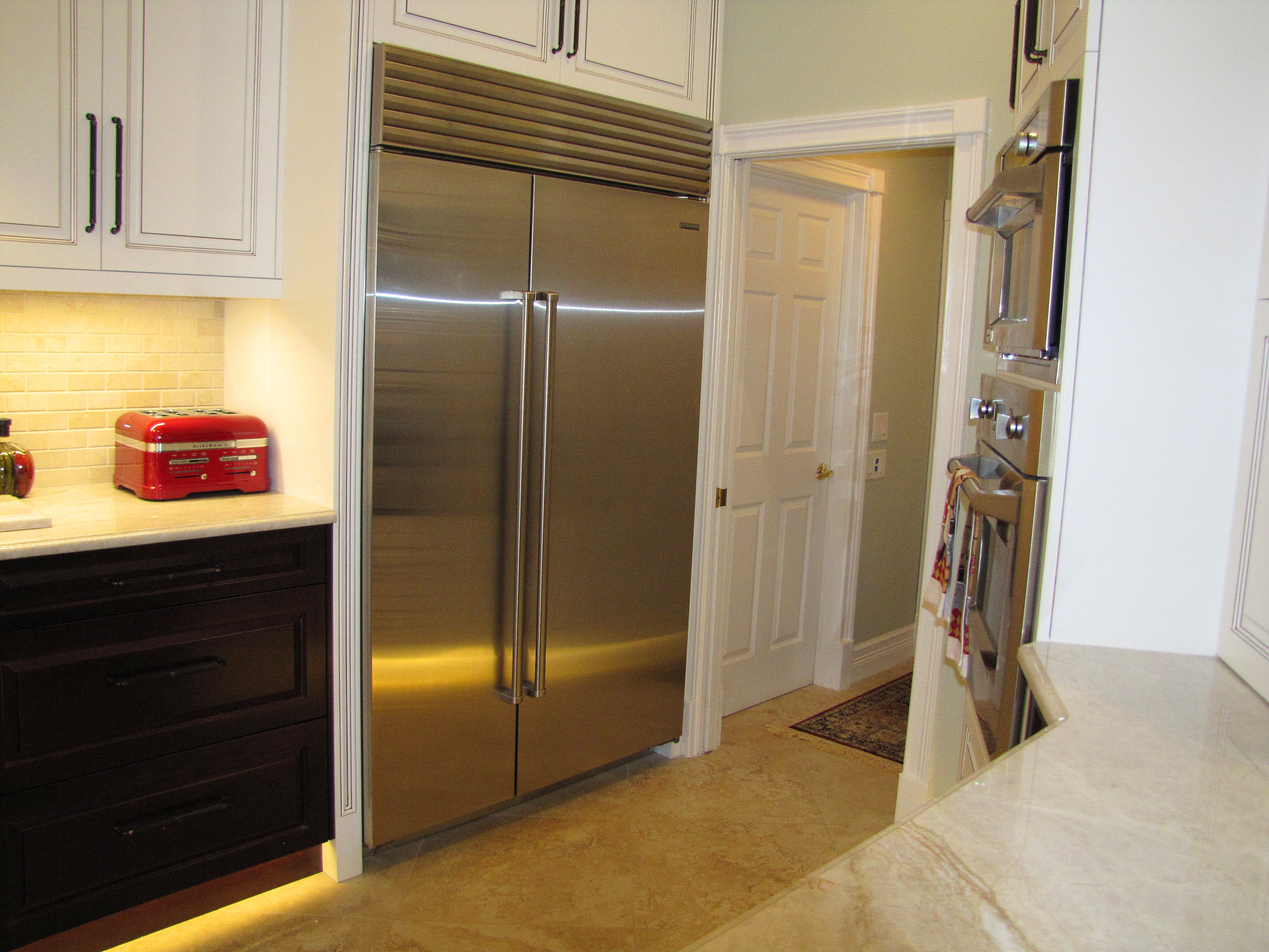 Luxury homes will either have a Subzero or a Thermador Refrigerator. The Subzero is better, has an internal water and ice dispenser, and internal water and air purification systems. It is also more expensive than the Thermador. We went with the Subzero, we call it the Toyota because installed it costs more than a car. The Wolf Stainless hood with integrated lighting has the motor on the home's roof to keep the noise down.